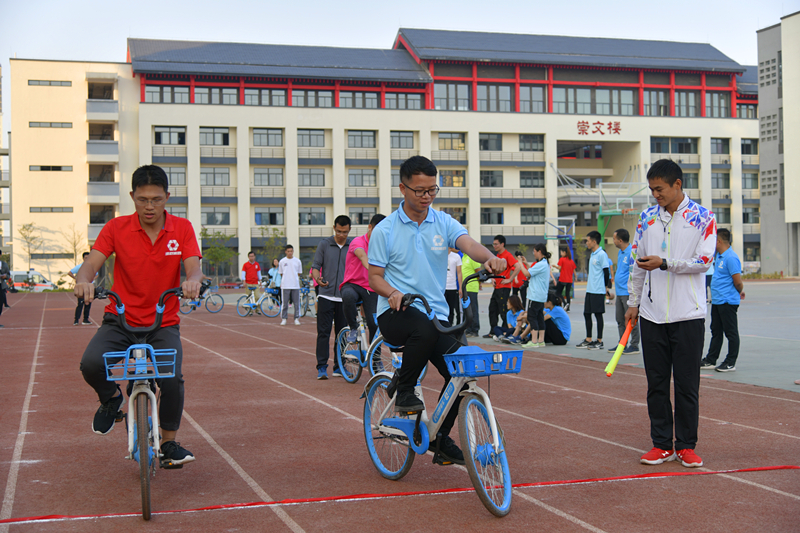 下午,雖然艷陽高照,但是卻絲毫沒有影響參賽隊員們的熱情,賽場更是熱火朝天,加油聲此起彼伏,原來,這是最受職工歡迎和參與率最高的比賽環(huán)節(jié)——趣味類運動競技。今年的趣味競技設(shè)置了龜兔賽跑、快樂運球、同舟共濟、滾鐵環(huán)、激情袋鼠、定點投籃和慢騎自行車等項目,既有團體比賽,又有個人積分賽,大家結(jié)合自身的實際和特長選報項目,全身心投入比賽。為了取得好成績,午飯后,很多運動員放棄了休息,都在操場上反復(fù)練習(xí),不斷總結(jié)經(jīng)驗。