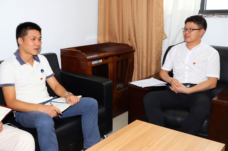 集團(tuán)黨委副書記、總經(jīng)理鄧?yán)^慧與預(yù)備黨員農(nóng)福興談心談話