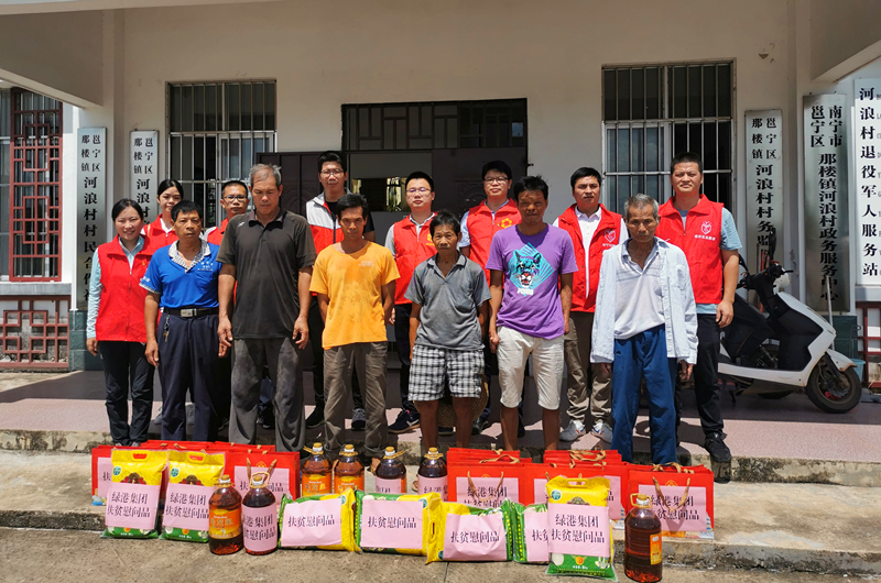 9月17日上午,綠港集團黨委書記、董事長龔國強,黨委副書記、總經(jīng)理鄧?yán)^慧等一行4人來到對口幫扶的邕寧區(qū)那樓鎮(zhèn)河浪村開展創(chuàng)建文明城市·助力脫貧攻堅中秋節(jié)、國慶節(jié)雙節(jié)節(jié)前慰問工作。經(jīng)開區(qū)建設(shè)局代表、君凱公司代表、那樓鎮(zhèn)河浪村駐村第一書記林國彬以及河浪村村干部參加了慰問活動。