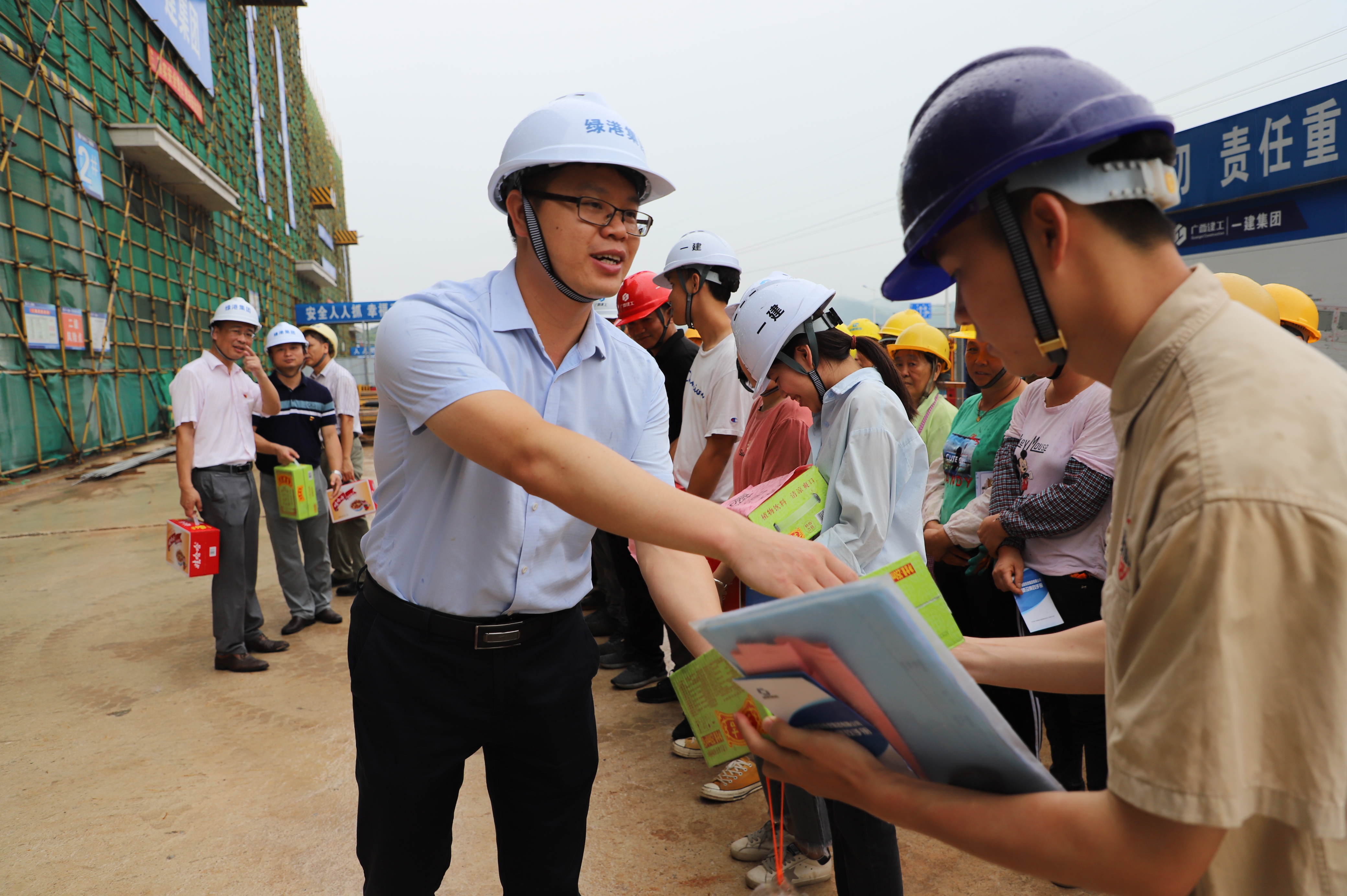 集團黨委書記、董事長龔國強為工地的一線職工送上清涼慰問品