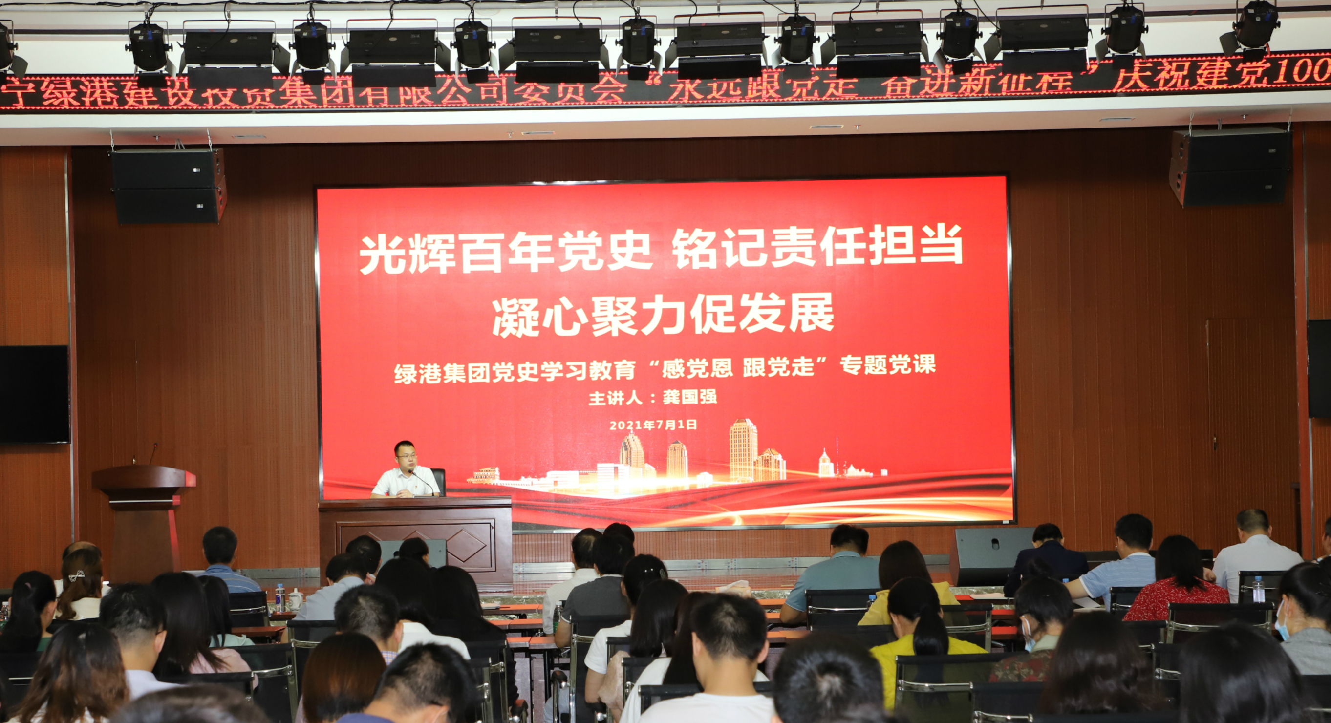 7月1日,綠港集團(tuán)黨委開(kāi)展“黨史開(kāi)講”專(zhuān)題黨課。集團(tuán)黨委書(shū)記、董事長(zhǎng)龔國(guó)強(qiáng)以《光輝百年黨史 銘記責(zé)任擔(dān)當(dāng) 凝心聚力促發(fā)展》為主題,為集團(tuán)各黨支部黨員、積極分子講授黨課。