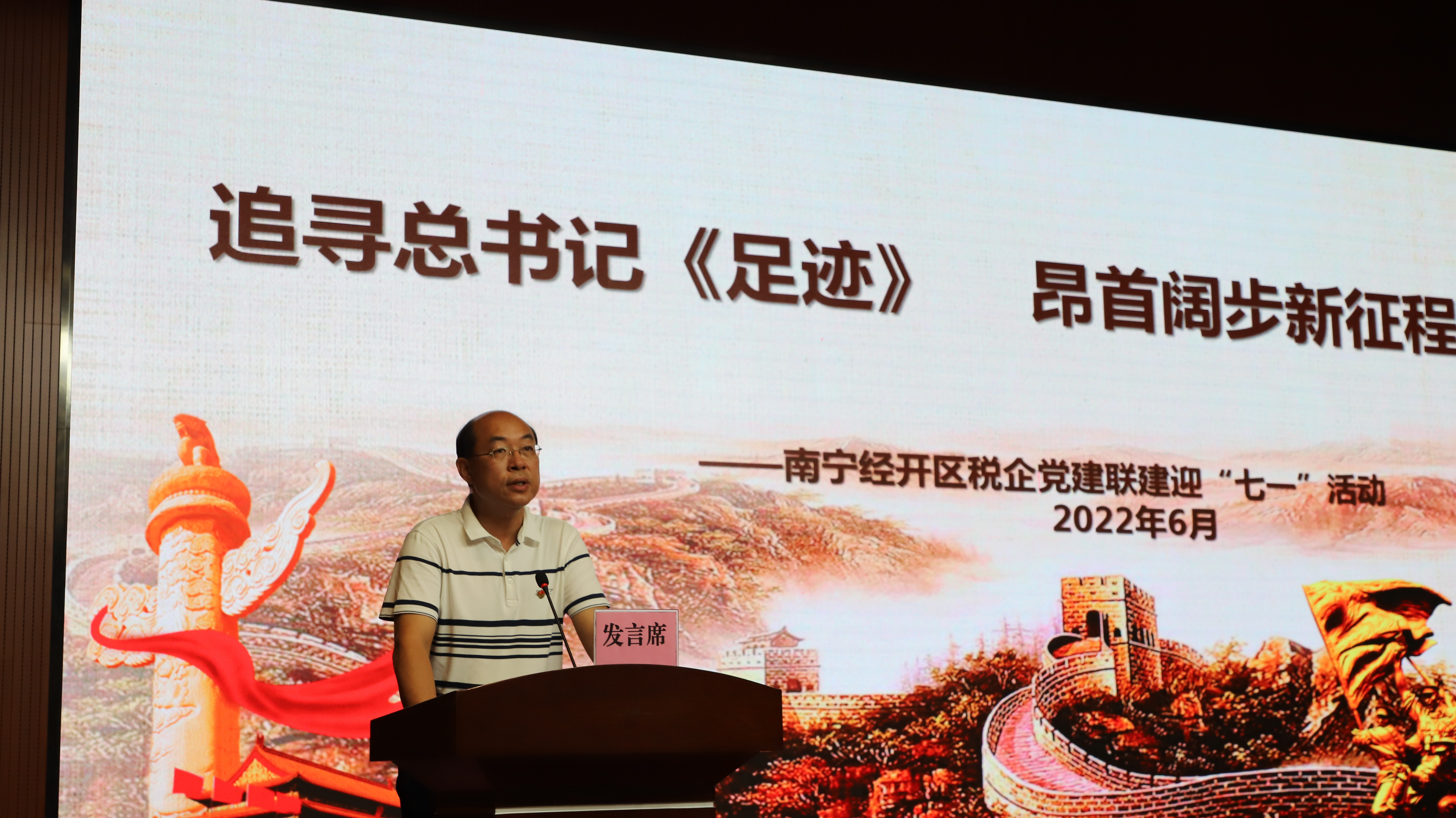 參加活動的全體黨員認(rèn)真觀看央視《組合式稅費(fèi)支持政策助企紓困成效顯現(xiàn)》視頻。經(jīng)開區(qū)稅務(wù)局黨委書記、局長胡大洪介紹稅務(wù)部門黨建引領(lǐng)促減稅降費(fèi)落地落實(shí),表示在貫徹落實(shí)黨中央、國務(wù)院稅費(fèi)減免政策上,經(jīng)開區(qū)稅務(wù)局行動快速、措施有力,成立了留抵退稅“黨員突出隊”和“青年先鋒隊”,發(fā)揮黨團(tuán)員先鋒和表率作用,確保國家的惠企政策落到實(shí)處,讓廣大市場主體充分、便捷地享受到政策紅利。綠港集團(tuán)、中外運(yùn)廣西有限公司陸運(yùn)事業(yè)部、南寧恒楓飲料有限公司3個企業(yè)黨員代表分別上臺作交流。綠港集團(tuán)榮鑫公司黨支部書記李汝埠表示,政策紅利也是中小企業(yè)發(fā)展的一大助力,今年4月份以來,我國實(shí)施組合式稅費(fèi)支持政策,經(jīng)開區(qū)稅務(wù)局積極促進(jìn)這一政策落地落實(shí),作為綠港集團(tuán)下屬的榮鑫公司切實(shí)享受到政策紅利,疫情防疫常態(tài)化的當(dāng)下,不少中小企業(yè)都遇上許多難題,希望稅務(wù)部門在稅務(wù)方面著力為納稅人解難題,確保企業(yè)能享會享、應(yīng)享盡享稅收優(yōu)惠政策。
