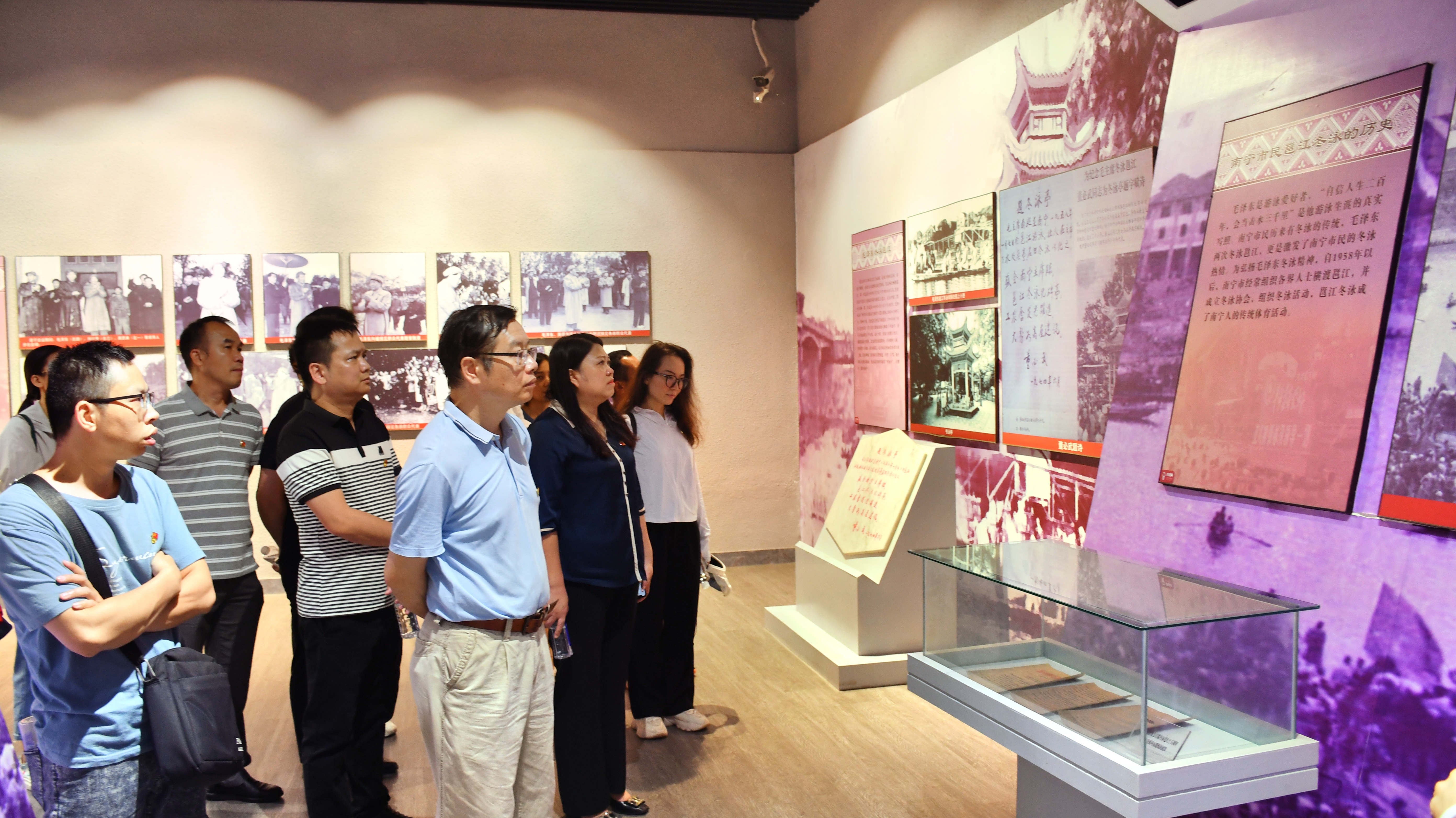 走進(jìn)紀(jì)念館大門(mén),一塊浮雕作品映入眼簾,它再現(xiàn)了1958年毛澤東主席在人民公園望仙坡接見(jiàn)廣西各族人民代表的壯觀場(chǎng)景。時(shí)隔60多年,追尋偉人的足跡,我們一起回憶那段激動(dòng)人心的光輝歲月。紀(jì)念館通過(guò)實(shí)物、圖片、文字資料的組合,配以聲、光、色等現(xiàn)代科技手段,展示了1958年1月毛澤東主席在南寧主持召開(kāi)中央工作會(huì)議期間,接見(jiàn)廣西各族人民代表,對(duì)廣西地方經(jīng)濟(jì)發(fā)展作出高瞻遠(yuǎn)矚指導(dǎo)的活動(dòng)情況,以及劉少奇、周恩來(lái)等黨和國(guó)家領(lǐng)導(dǎo)人指導(dǎo)廣西社會(huì)主義現(xiàn)代化建設(shè)的歷程。黨員們跟隨著一幅幅照片回顧了人民公園、邕江河畔、軍區(qū)禮堂等毛澤東主席在廣西的歷史足跡和廣西發(fā)展歷史。參與主題參觀學(xué)習(xí)的黨員紛紛表示:“講解員的解說(shuō)非常讓人心潮澎湃,參觀活動(dòng)是思想上的傳承,激勵(lì)我們帶著這份信念和力量,追隨偉人的足跡,把南寧建設(shè)得更加美好。”