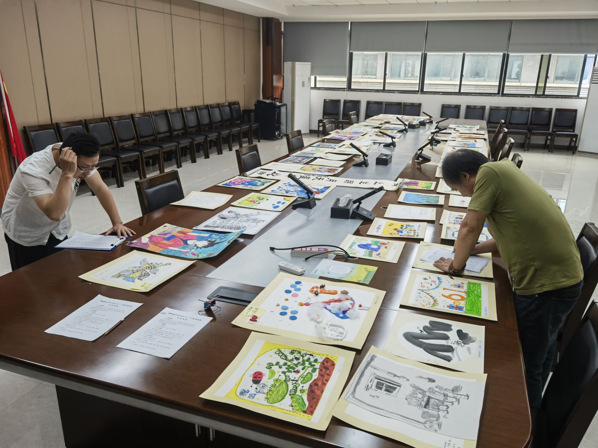 為了確保比賽的公正性和專業(yè)性,綠港集團(tuán)創(chuàng)新性地采用了現(xiàn)場與遠(yuǎn)程相結(jié)合的評審模式,特邀專業(yè)評委老師、學(xué)生評委組成評審團(tuán)。部分無法親臨現(xiàn)場的評委遠(yuǎn)程參與了作品評審過程,與現(xiàn)場評委一同對參賽的65幅作品從繪畫主題、構(gòu)圖完整、色彩和諧、作品感染力和創(chuàng)作力等方面對作品進(jìn)行細(xì)致地考量打分,確保每一幅作品都能得到公平且專業(yè)的評價(jià)。經(jīng)過多輪嚴(yán)格篩選,最終從兩個(gè)年齡段組別(3-6歲、7-12歲)中評選出了共計(jì)14個(gè)獎項(xiàng)的得主,包括每個(gè)組別的一等獎1名、二等獎2名、三等獎4名。